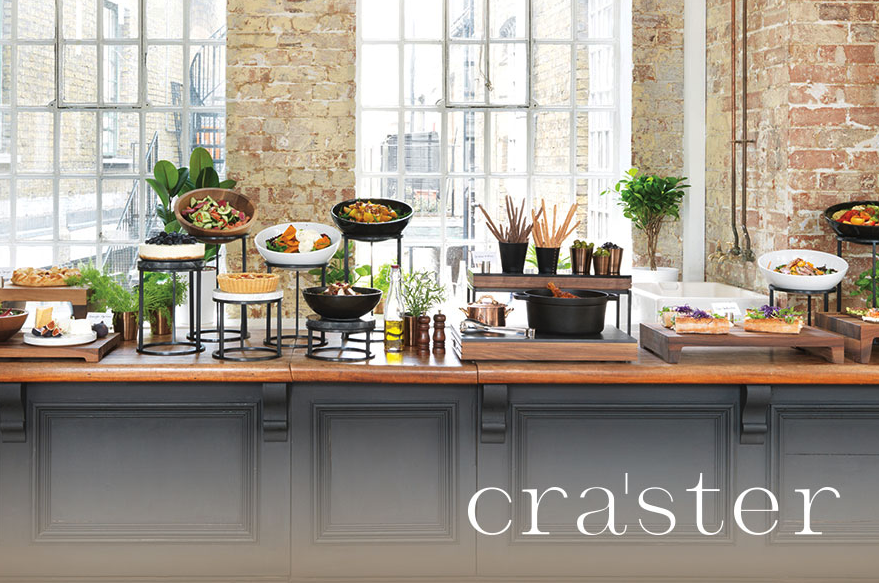 Die Präsentation von Speisen ist das Herzstück des Craster-Designs, seien es vielseitige Displays mit Riser- und Sockelsystemen, hochwertige Tischpräsentationen und In-Room-Dining-Lösungen, einschließlich Butler-Tabletts und -Ständern. Eine außergewöhnliche Präsentationen für Ihr Buffet.